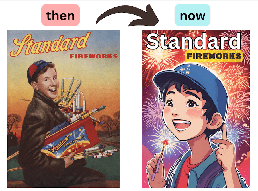 Adverts have come a long way. The first advert probably took someone a long time to create. The second, I just prompted AI, which made the anime-styled image in seconds.